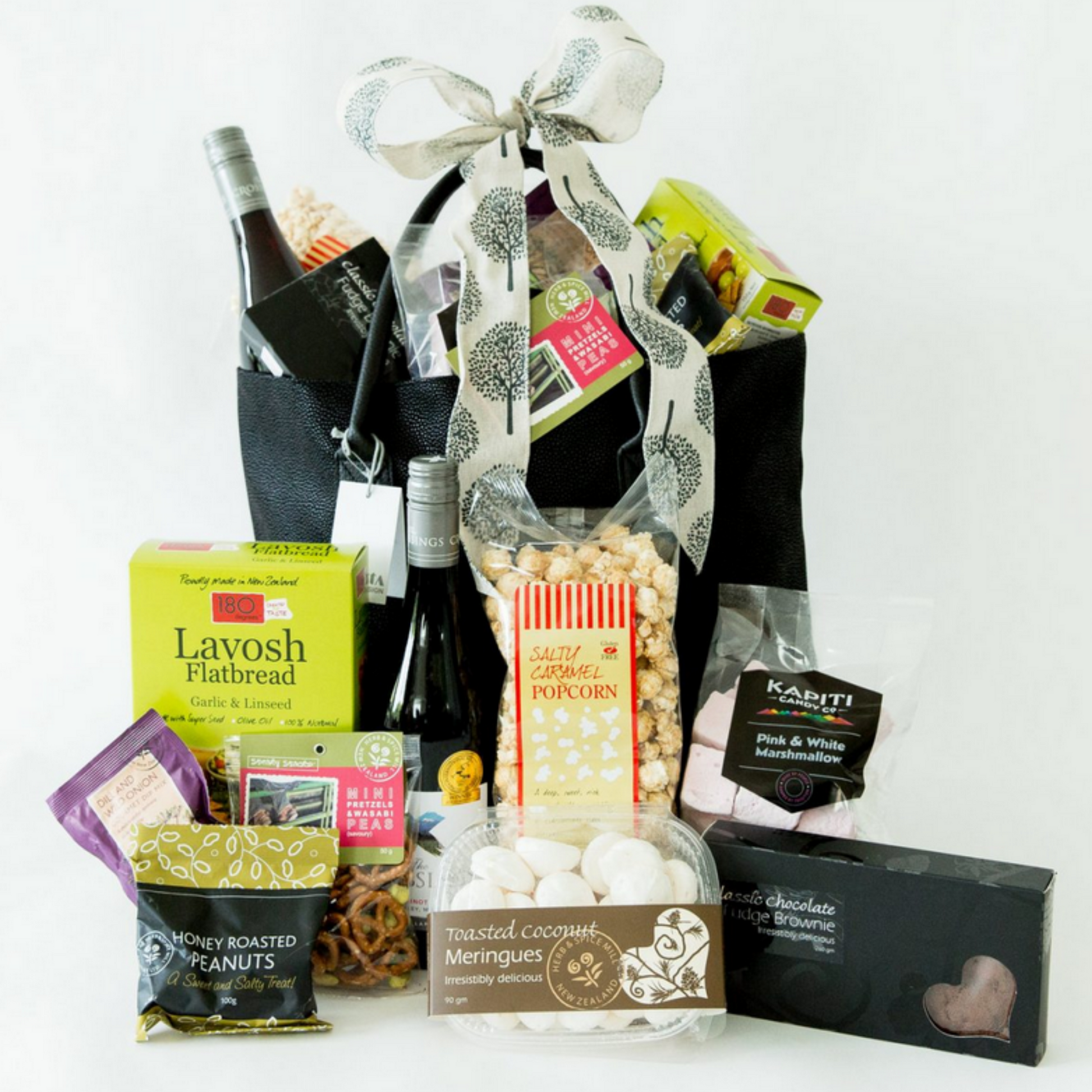 CITTA leather look tote accompanied with a seletcion of foodie items & NZ wine. Your choice of Pinot Noir or Sauvignon Blanc. Bag will be black or grey subject to availability.