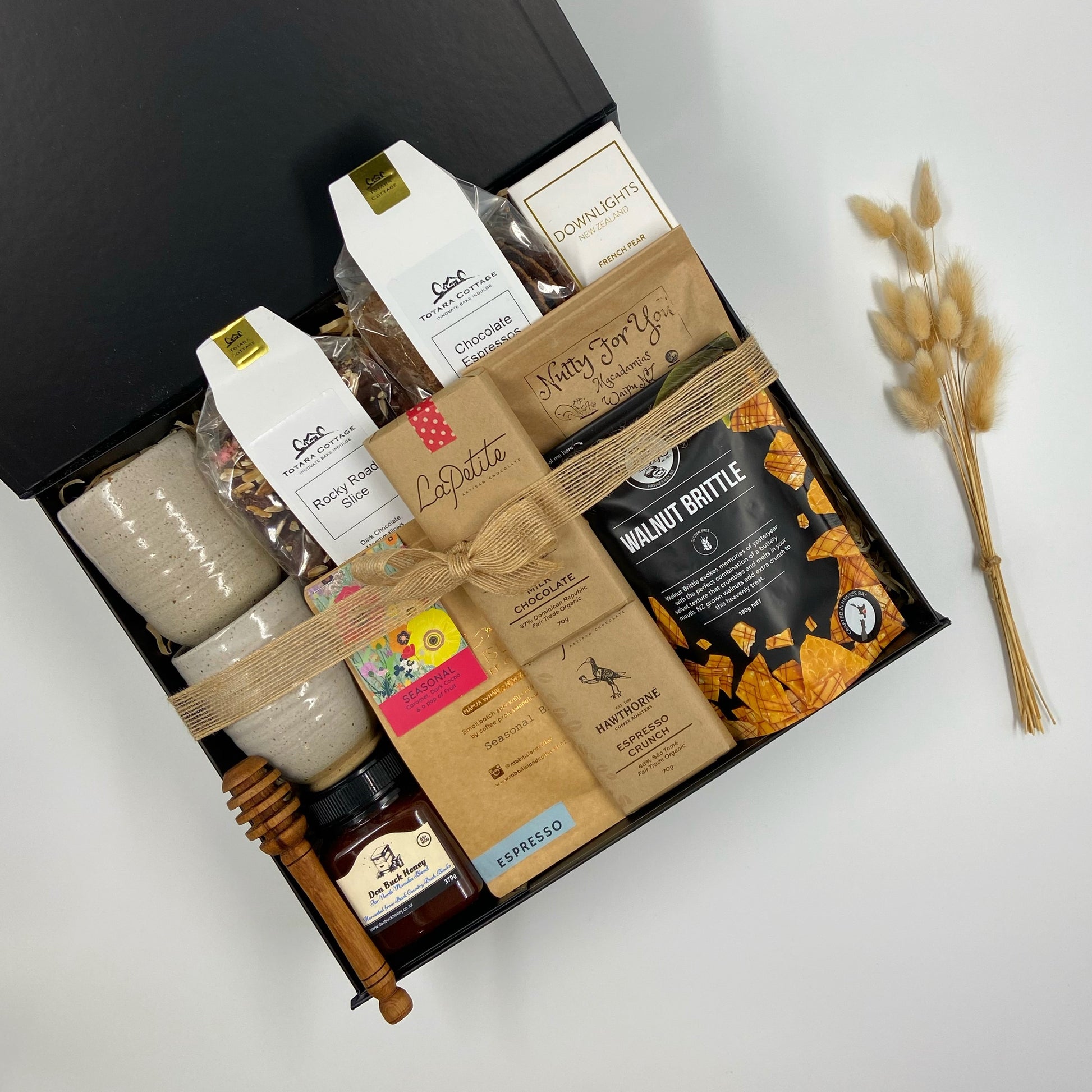Just perfect to celebrate the purchase or sale of a property. The big treat gift box is jammed with New Zealand made products, including an incredible, hand-made resin board, just perfect for the recipient to keep and be reminded of the amazing experience they had with their fantastic agent. Each gift is accompanied with story cards that share the history behind each of the kiwi makers whose products are enclosed.