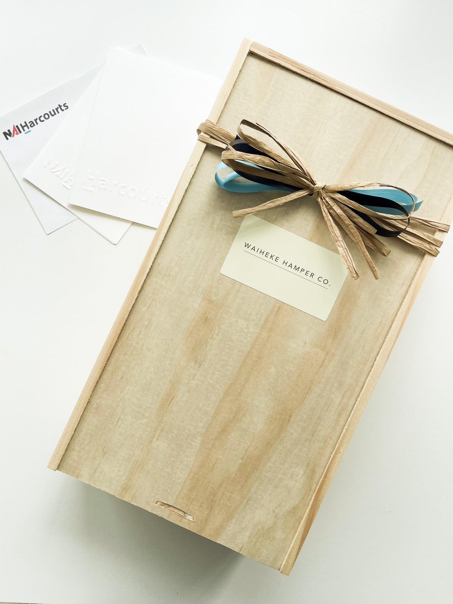 Unique handcrafted foodie goodies from Waiheke Island… beautifully presented in a NZ made wooden gift box with your personal handwritten message.